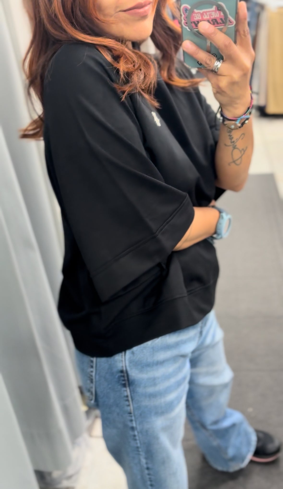 Felpina donna girocollo manica raglan, manica corta. Vestibilitá morbida. Comodissima. Interno Cotone garzato. MEDE IN ITALY