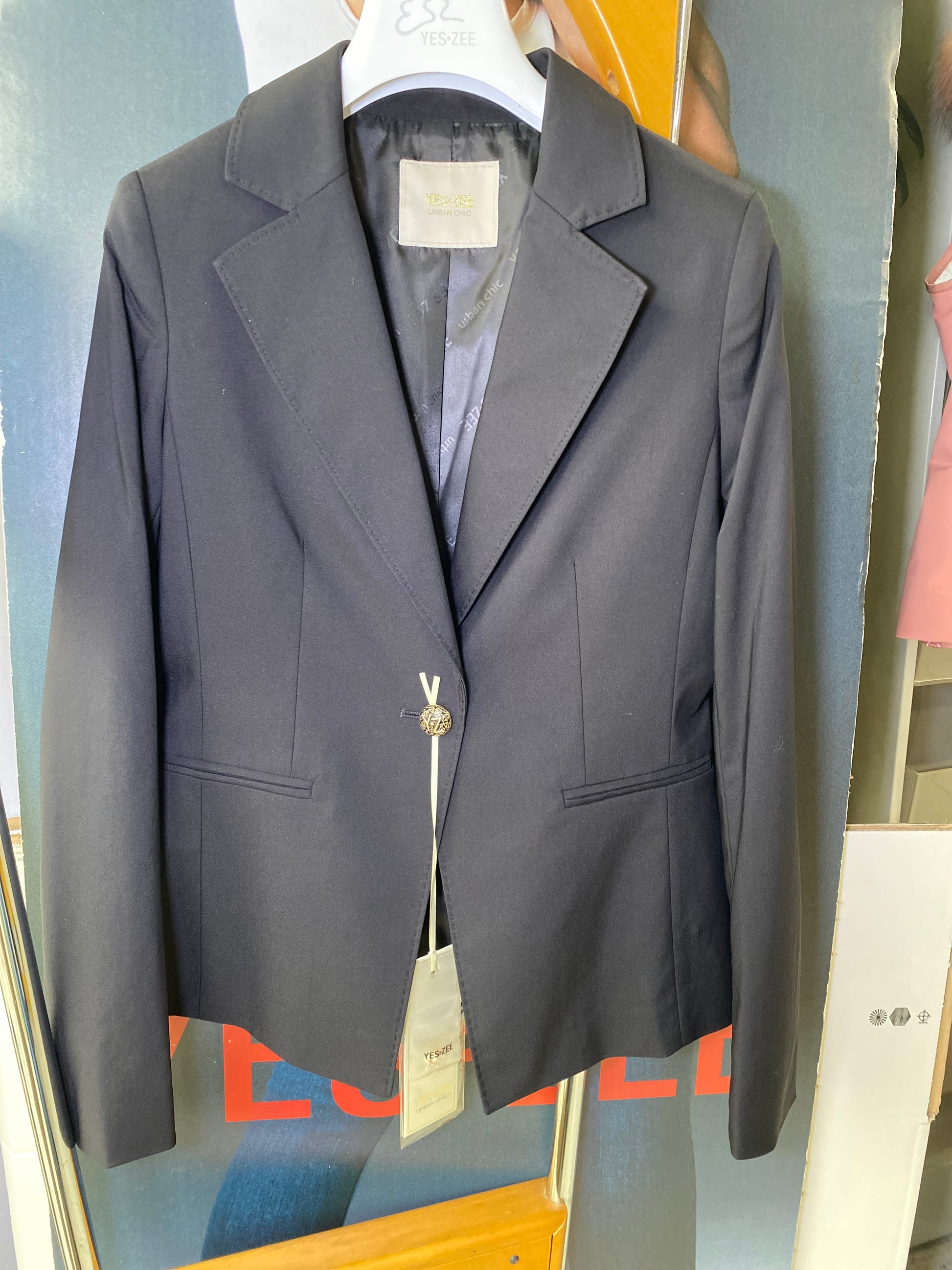 Giacca donna sciancrata con bottone gioiello. Spilla YZ