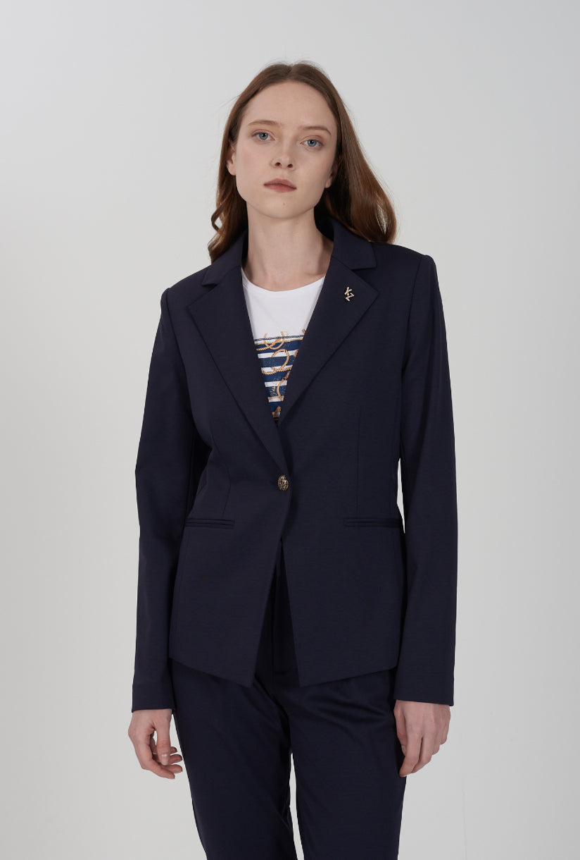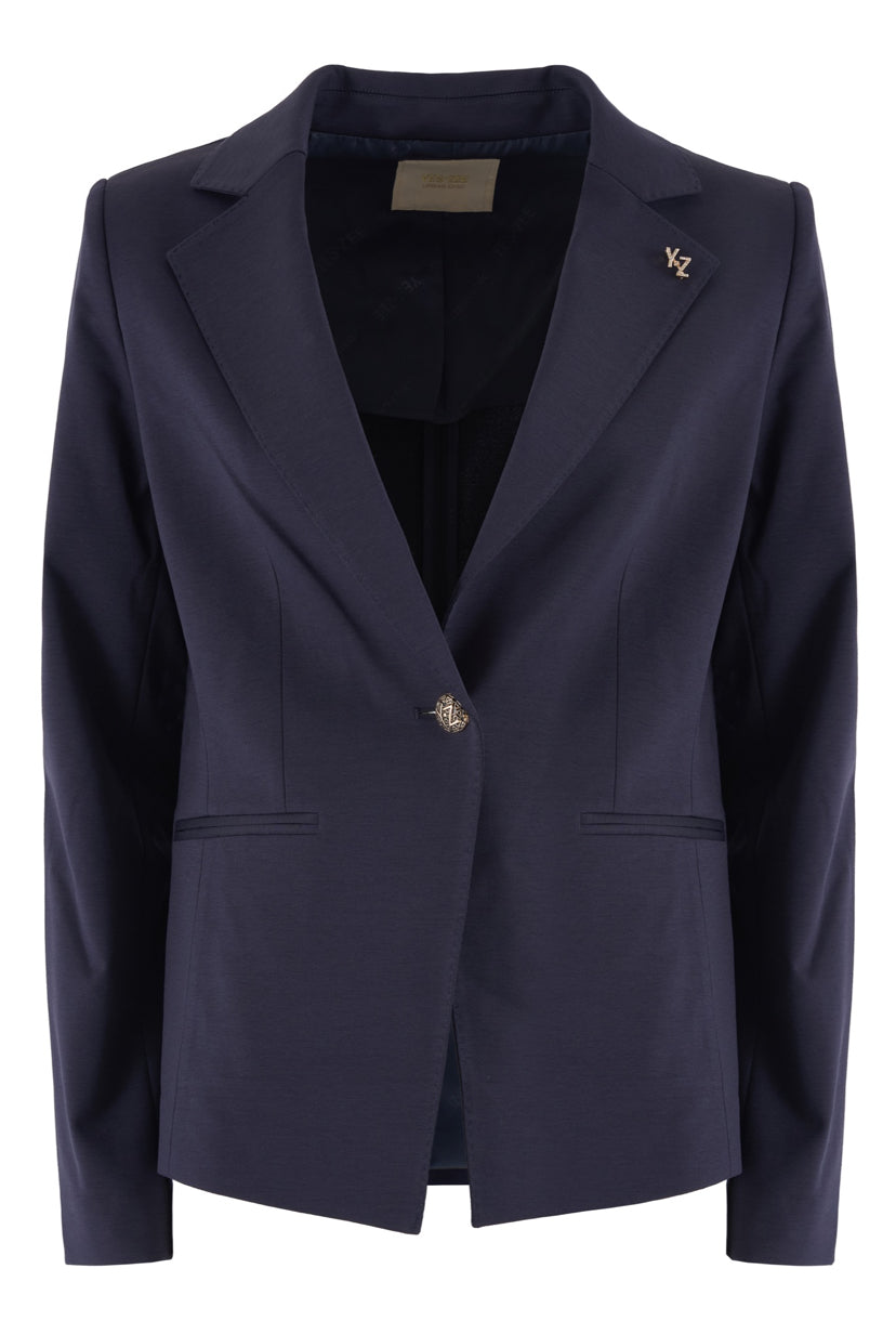 Giacca donna in punto Milano sciancrata con bottone gioiello e spilla YES ZEE