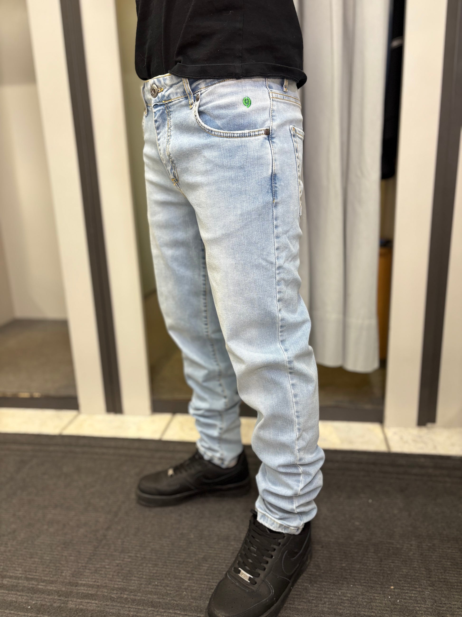 Jeans uomo, slim fit vita regolare, lunghezza gamba 78 cm. Lavaggio chiaro pulito. MADE IN ITALY