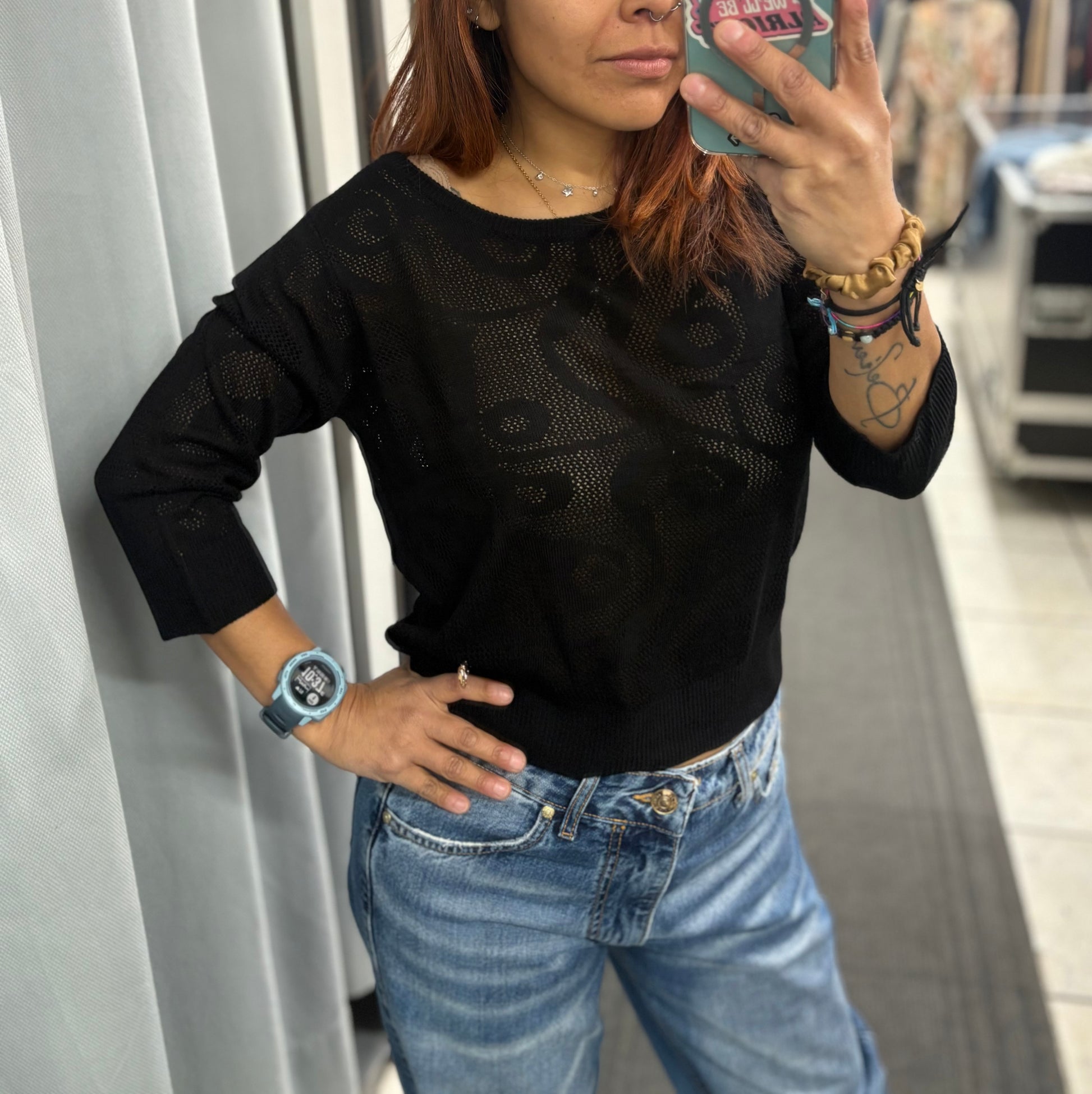 Maglia donna, girocollo ampio, manica 3/4 modello morbido.