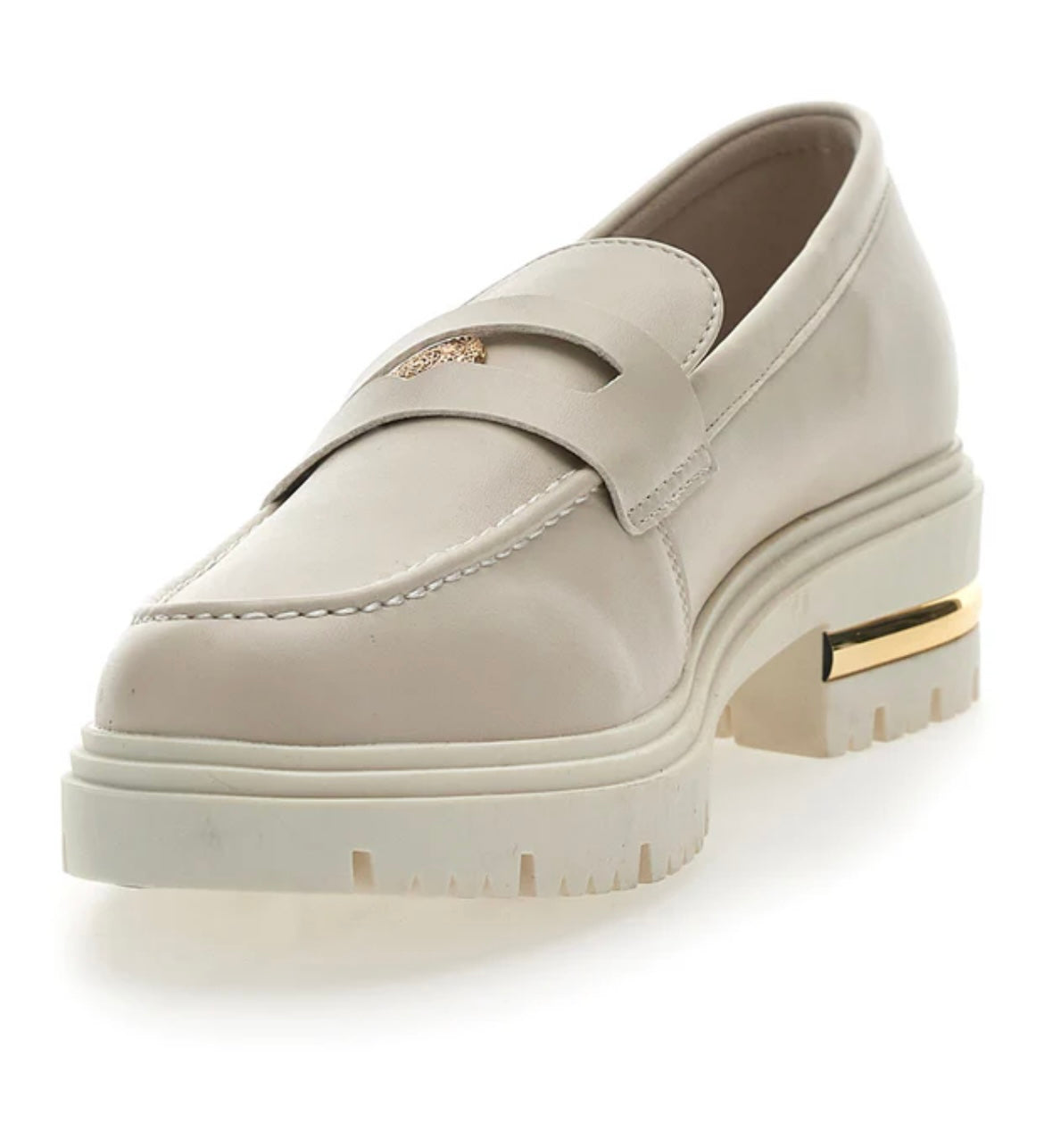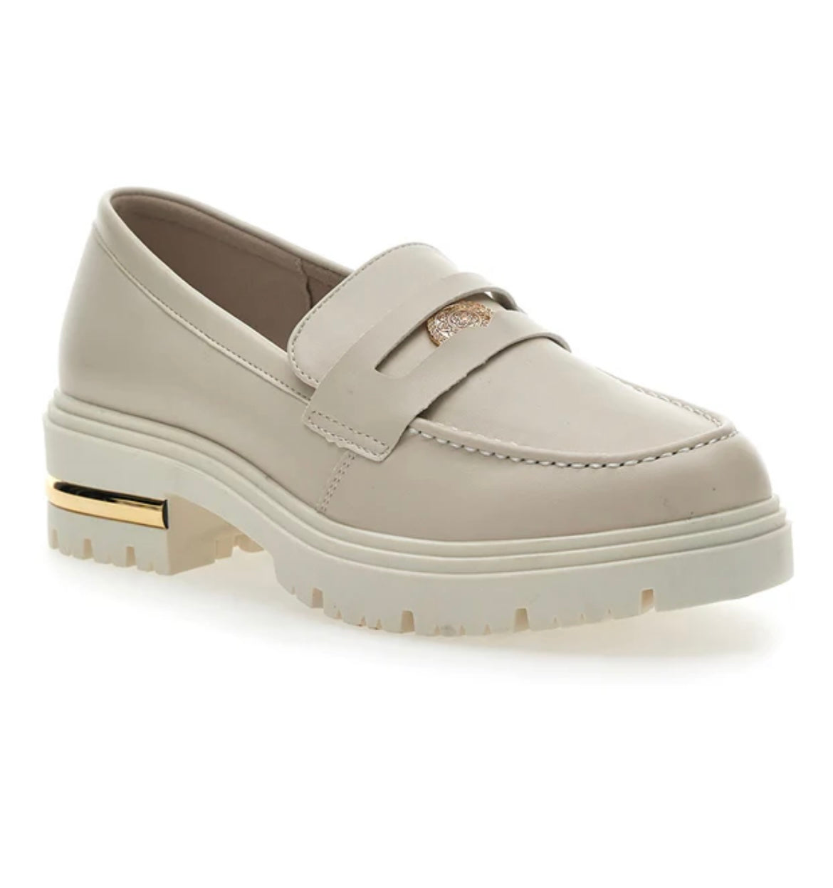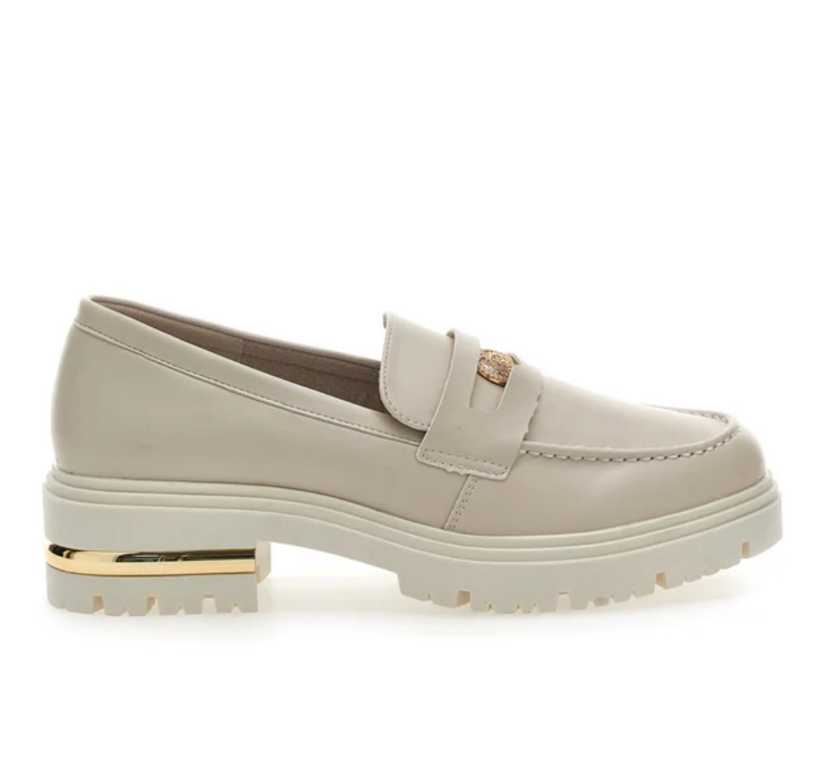 Dotato di una comoda suola in gomma e la tomaia in color beige, questo mocassino chunky è la novità di stagione da indossare subito! Perfetto con gonne a pieghe con stampa floreale, saranno le calzature perfette anche per completare i tuoi look in color block.