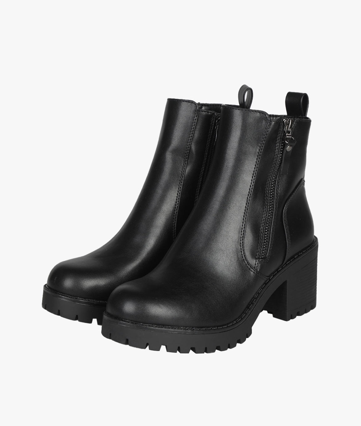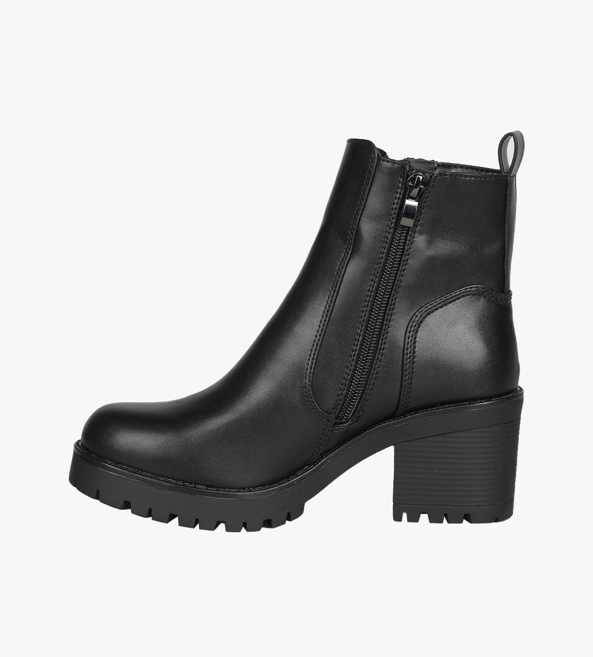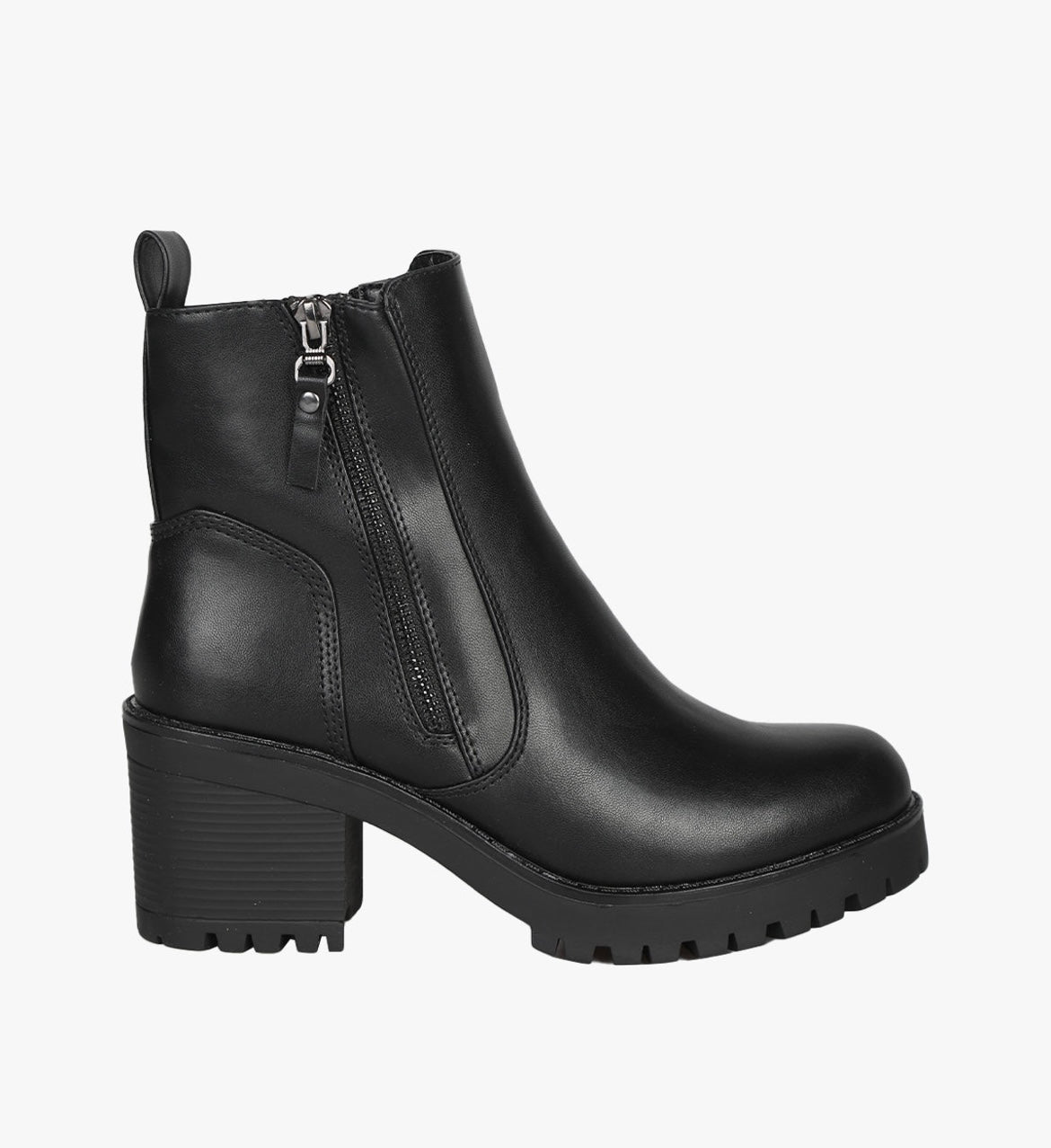 Tronchetti da donna in ecopelle, con cerniera decorativa sul lato esterno, mentre sul lato interno troviamo una comoda cerniera di chiusura, interno foderato in tessuto, e suola in gomma.